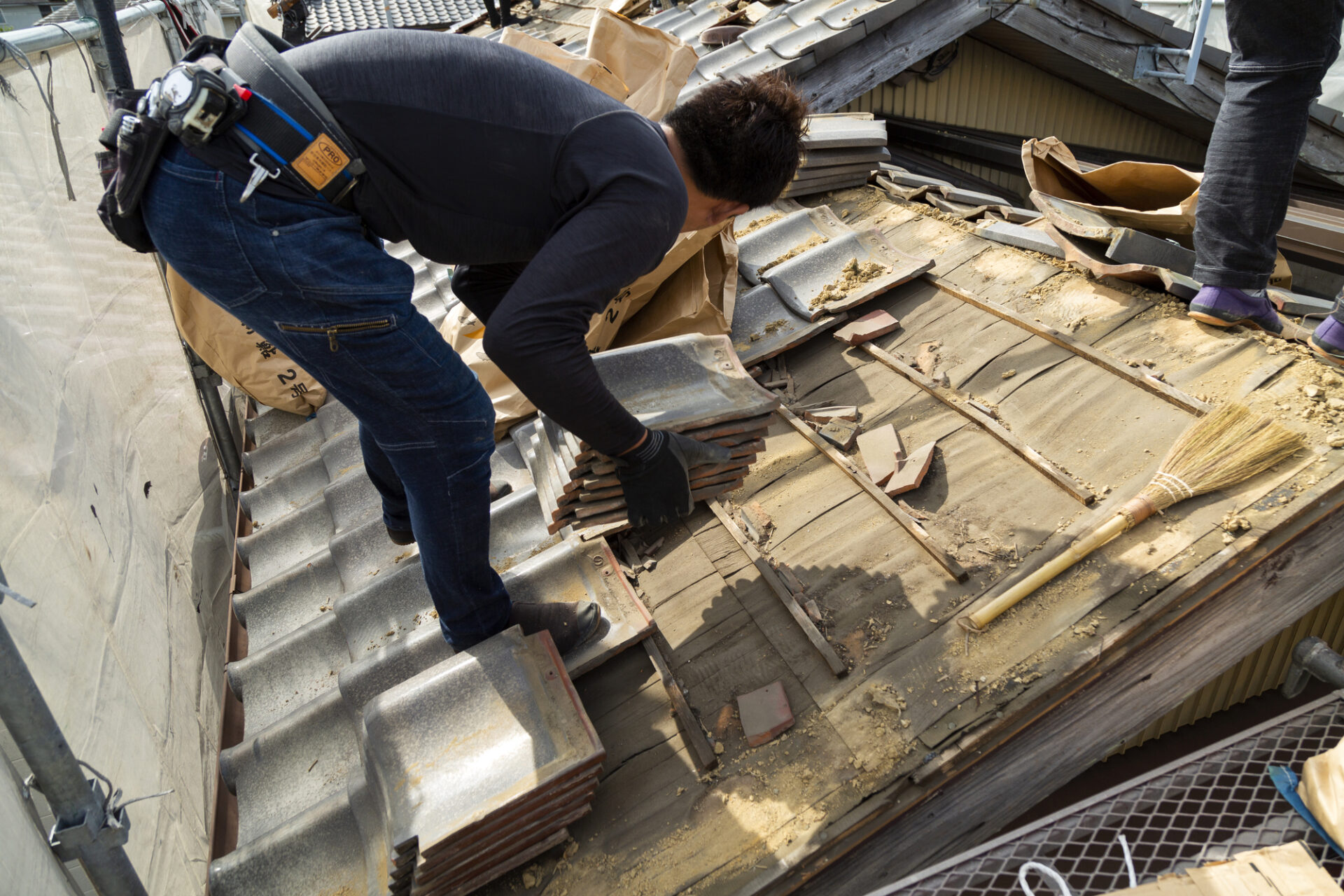 劣化した屋根材を慎重に取り外します。同時に、廃材を適切に処分し、作業中の周囲への影響を最小限に抑えます。
