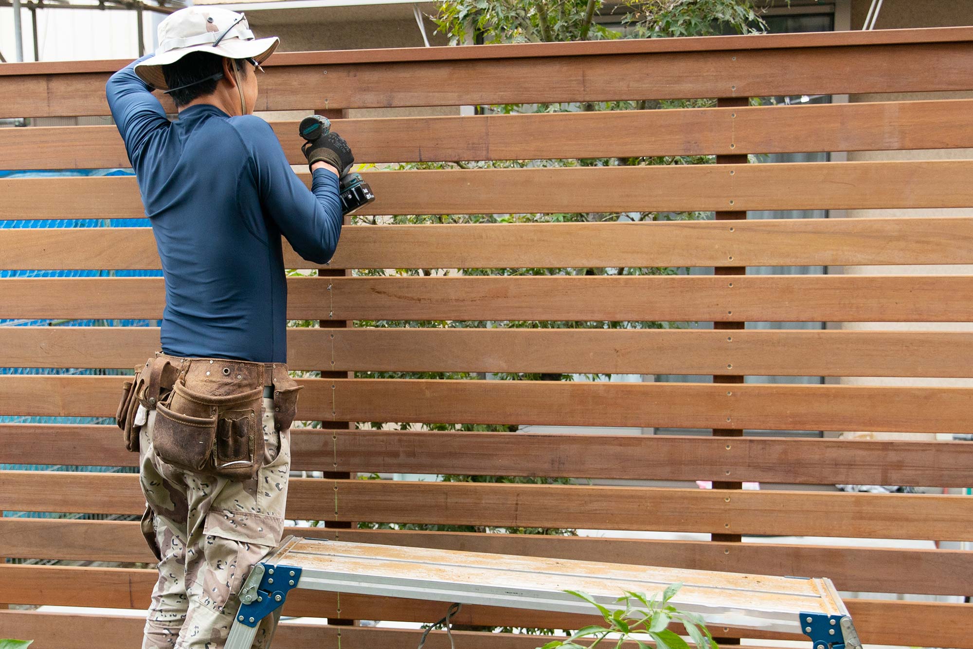 プライバシー保護・防犯の両面でフェンスは大きな役割を果たします。支柱を地中深く埋め込む必要がある場合も多く、地中に基礎ブロックやモルタルを流し入れる作業や、既存のコンクリートブロックに穴をあける作業を要します。