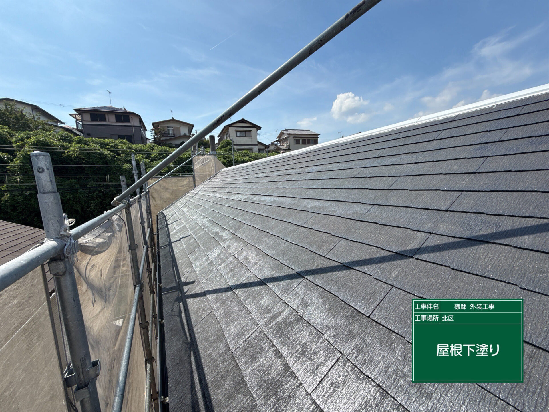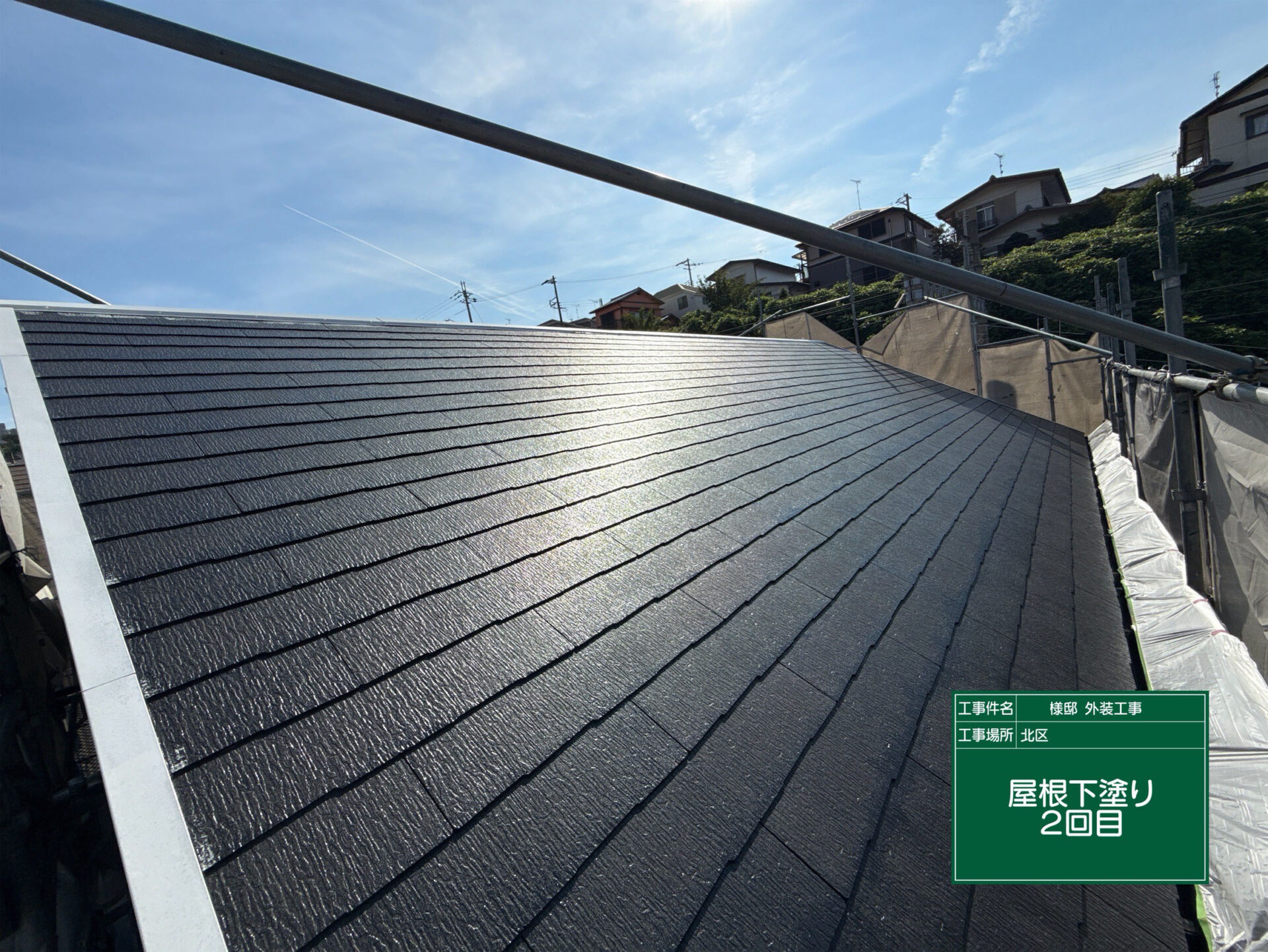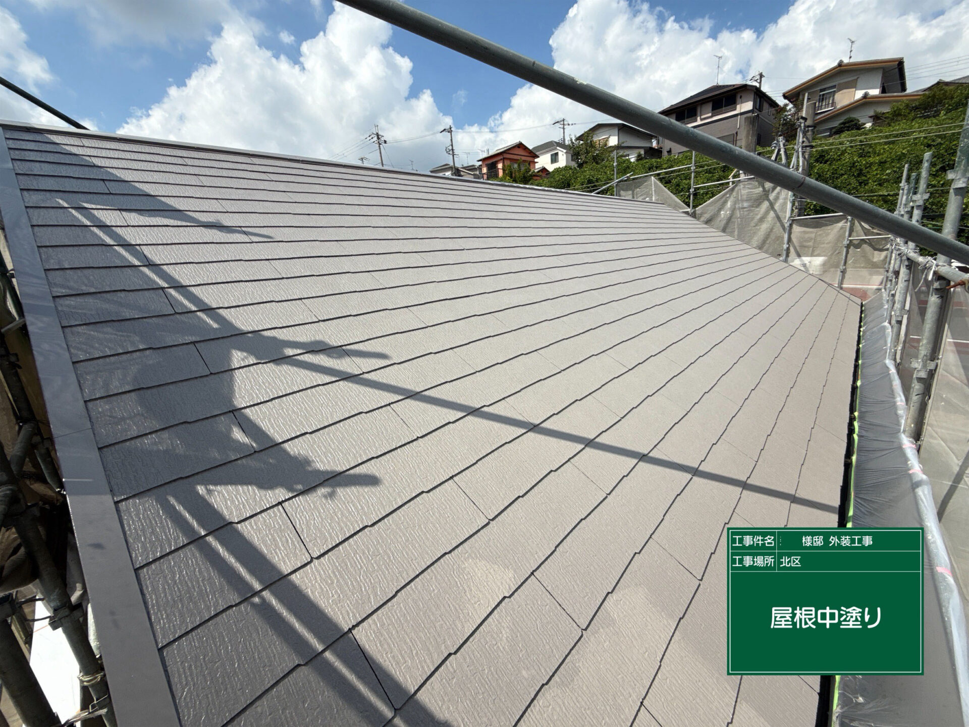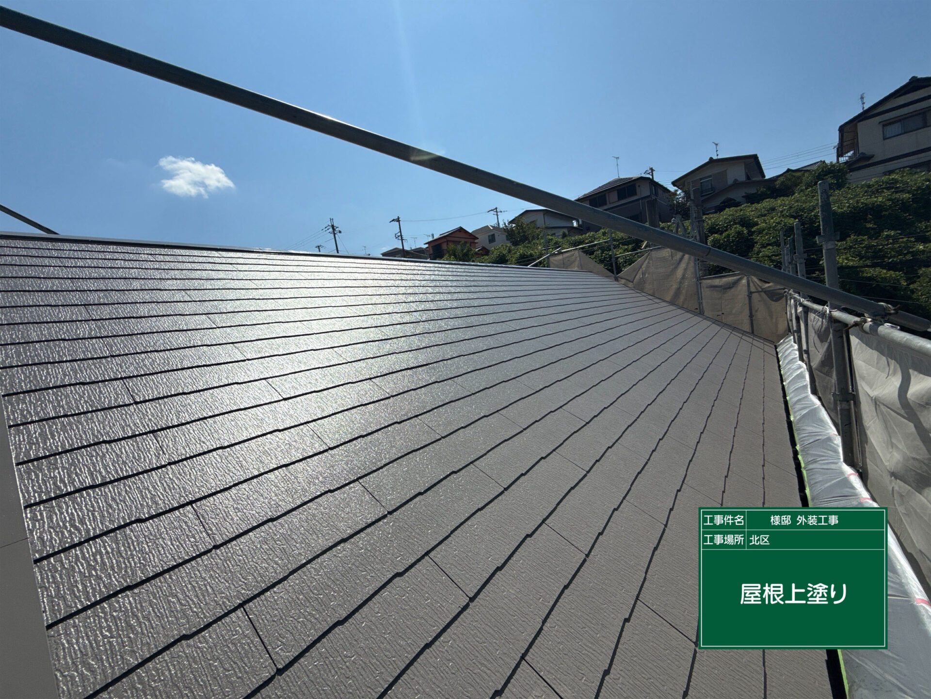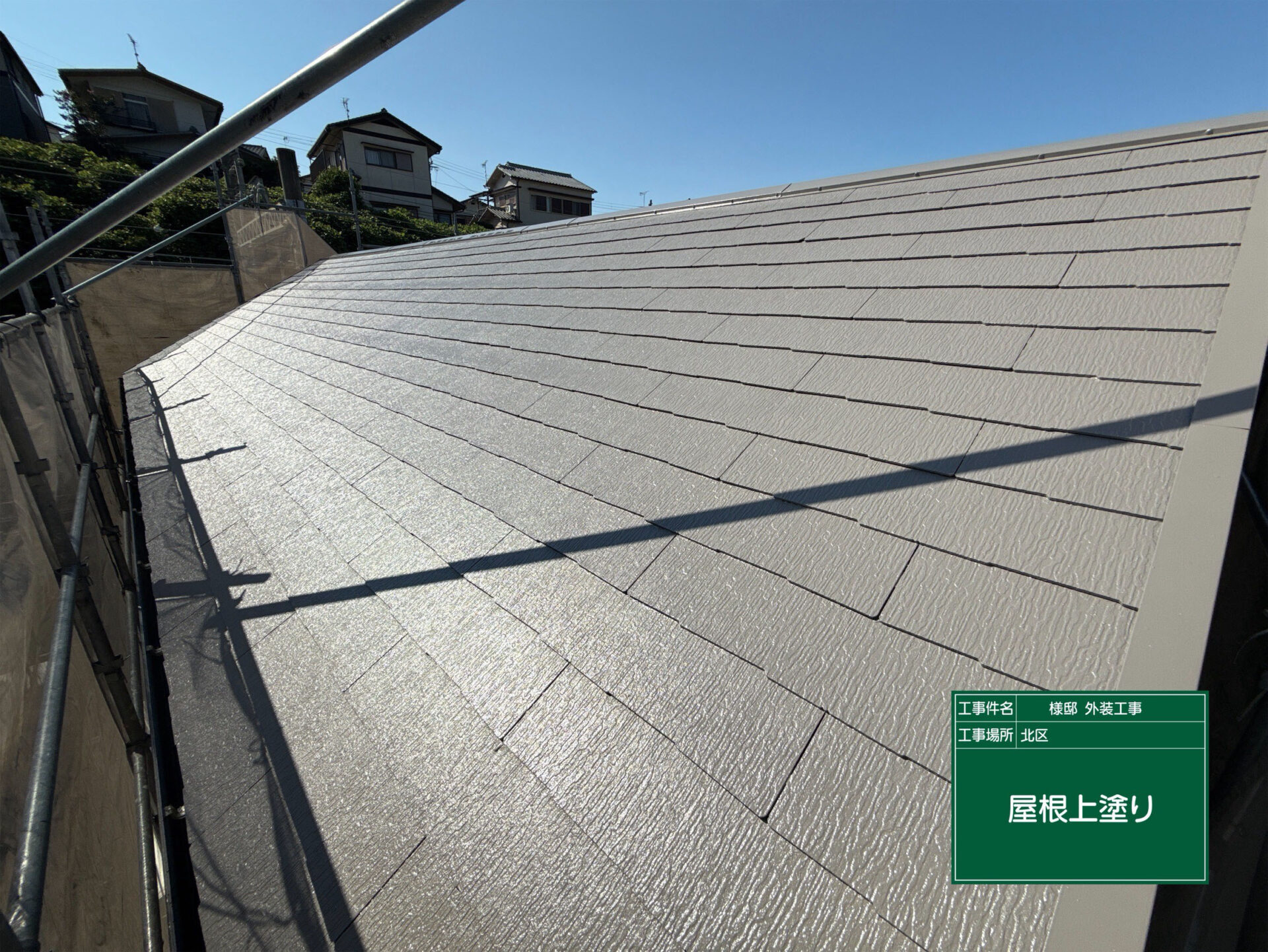 屋根にも同シリーズの EPC-070/EPC-009 を使用し、外壁との統一感を持たせつつ、遮熱性能を最大限に発揮しています。