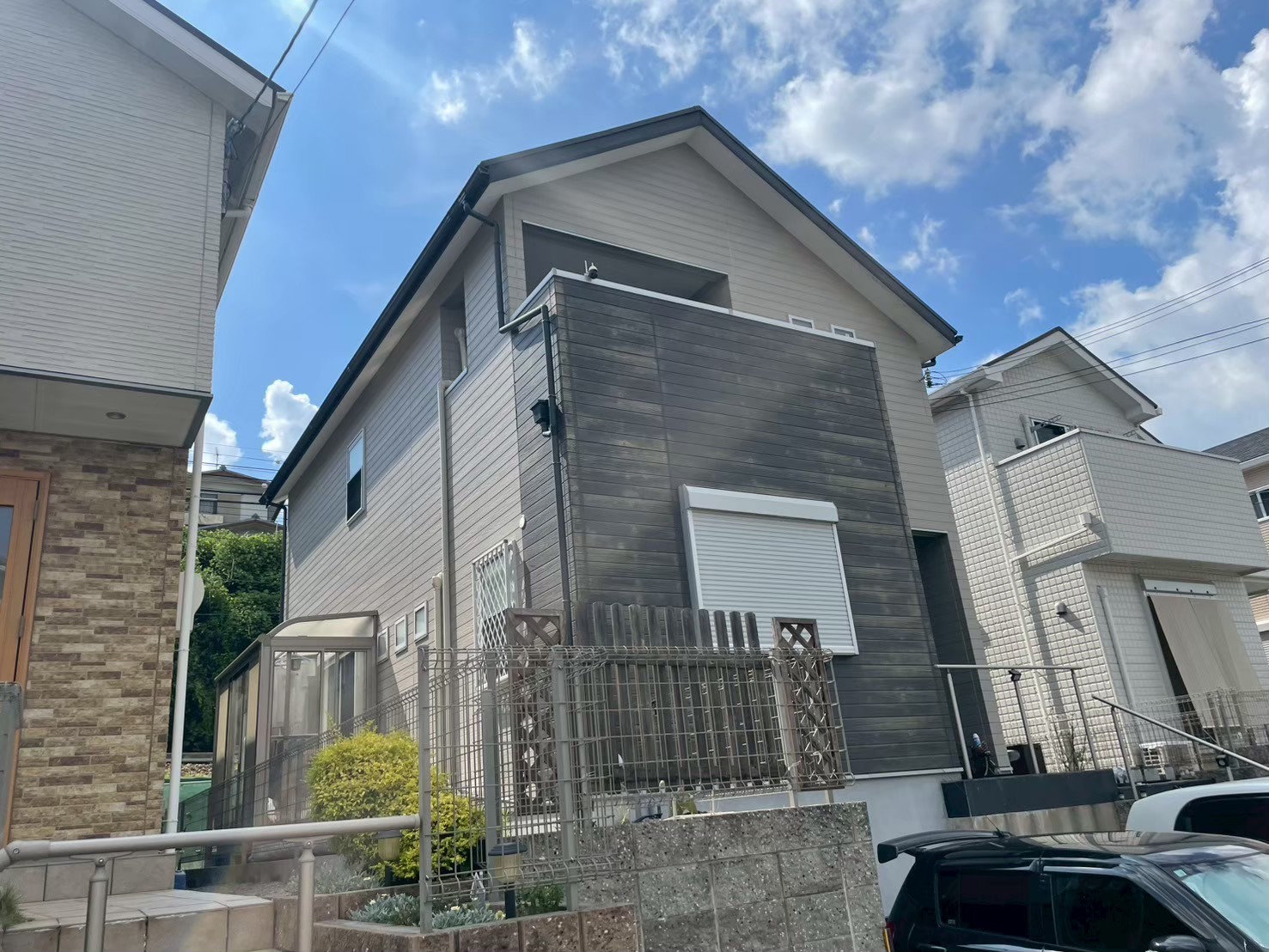 特に南面の外壁は紫外線の影響を受けやすく、汚れや退色が進行していたため、遮熱効果と耐久性を両立した塗料をご提案しました。